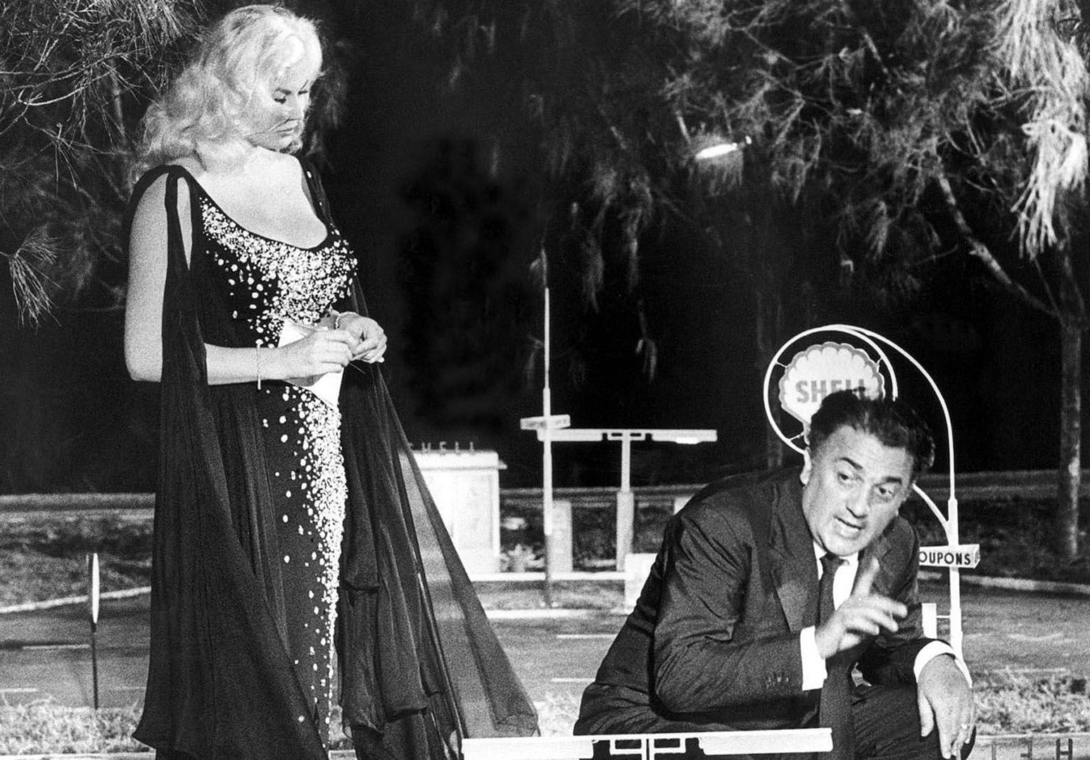 Anita y Fellini durante el rodaje de Las tentaciones del Doctor Antonio (Le tentazioni del dottor Antonio, 1962)