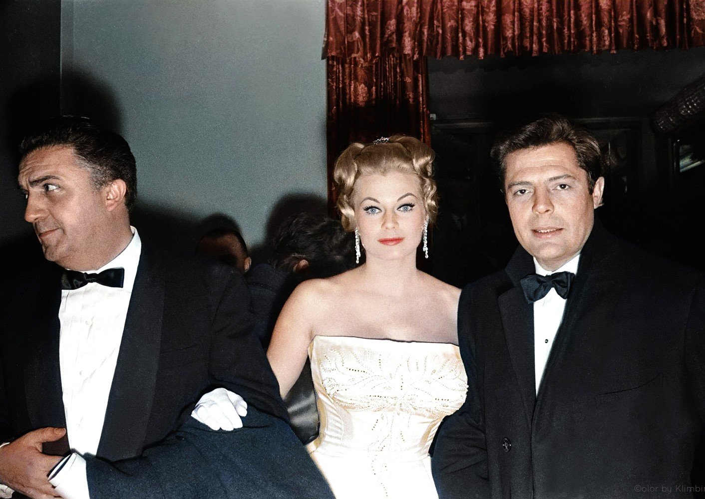Ante la insistencia de Mastroianni por conocerla, Fellini lo invitó a unirse a una cena con la actriz, seguro que ambos se causarían una buena impresión, pero no fue así. La frialdad entre ambos era notoria. Mastroianni le comentó que Anita le recordaba a un soldado de la Wehrmacht que durante una redada lo había forzado a subir a un camión en tiempos de guerra. “Después ella me dijo que no encontró atractivo a Marcello. Y él me dijo que no la encontró atractiva. No tuvo importancia. Yo había encontrado a mí Sylvia”, recordaba Fellini en conversación con la biógrafa Charlotte Chandler.