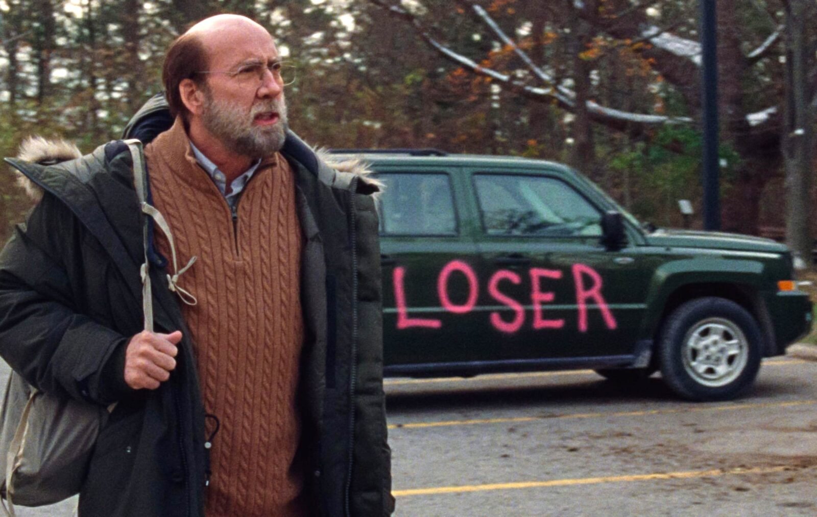 Ignoro de veras si lo que soñé tiene algún asidero con la realidad o si Borgli –armado solo con el buen recibimiento que tuvo su largometraje Enferma de mí (Syk Pike, 2022)- y contando con el apoyo de A24 y la coproducción de Ari Aster y Nicolas Cage, decidió emprender un proyecto de diez millones de dólares en el que fue director, guionista y montajista, y cuyos resultados como comedia negra, que incluso bordea con la sátira, son más que notables. Buena parte de ese éxito tiene que ver con la tridimensionalidad con la que está confeccionado el personaje protagónico, Paul Matthews (Cage), un biólogo y profesor universitario que superó ya la mediana edad y que siente, como académico, una falta de reconocimiento en su labor. Casado y con dos hijas adolescentes, Paul está en una “zona de disconfort” permanente: es un hombre torpe socialmente, sin inteligencia emocional, frustrado, ansioso y dubitativo. Hay que ver los encuentros que sostiene con tres mujeres diferentes a lo largo de la película para entender, no solo su falta de autoestima y su inseguridad, sino lo bien construido que está el personaje. Es asombroso.