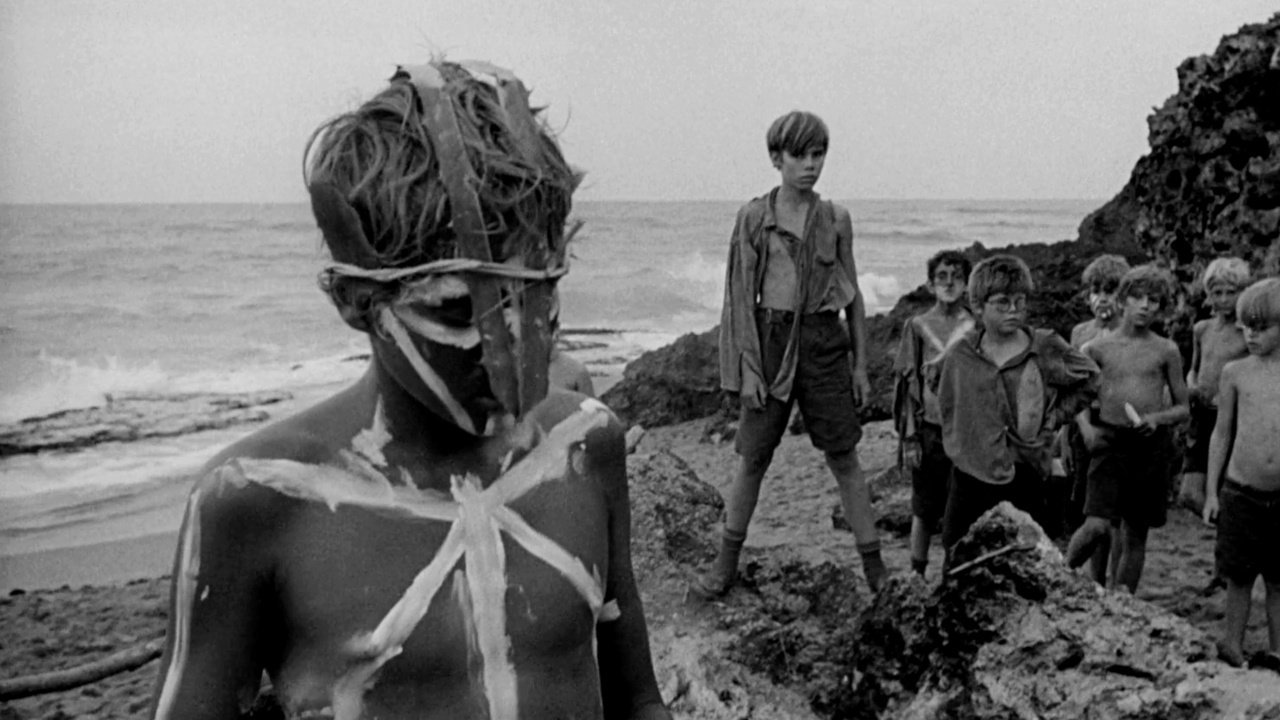 El señor de las moscas, según Brook, tiene lo experimental de su teatro. Hay al principio un tono naturalista, casi documental, al que contribuye la inexperiencia actoral de los muchachos protagonistas. “Necesitamos más reglas y hay que obedecerlas. Después de todo, no somos salvajes. Somos ingleses, y los ingleses somos siempre los mejores en todo”, escribe Golding y repite el guion de Brook en esa parte inicial del filme donde todos conservan la compostura y las normas democráticas, y se toman su estancia en la isla como unas vacaciones divertidas lejos de la supervisión de sus padres y tutores. Sin embargo, Brook los aísla, los encierra individualmente en el cuadro de la pantalla, que se llena de ángulos bajos y de primeros planos, para ir haciéndoles caer en la cuenta de su soledad y su progresiva alienación. La película se va tornando anárquica, algunos de los muchachos se aplican una pintura de guerra en el rostro y en el cuerpo y arman una tribu aparte, la de los cazadores, la de los que quieren subsistir sin reglas. Brook los deja ser, los persigue, la cámara se contagia de su frenesí, de su canticos, de sus gritos, de su violenta alucinación. Hay un logro enorme en haber sabido capturar esos momentos con tal honestidad, como si no se estuviera ante una recreación, sino ante un evento hipnótico espontaneo y colectivo. Esa irrupción sin previo aviso del azar y del caos se siente de veras como una revelación.