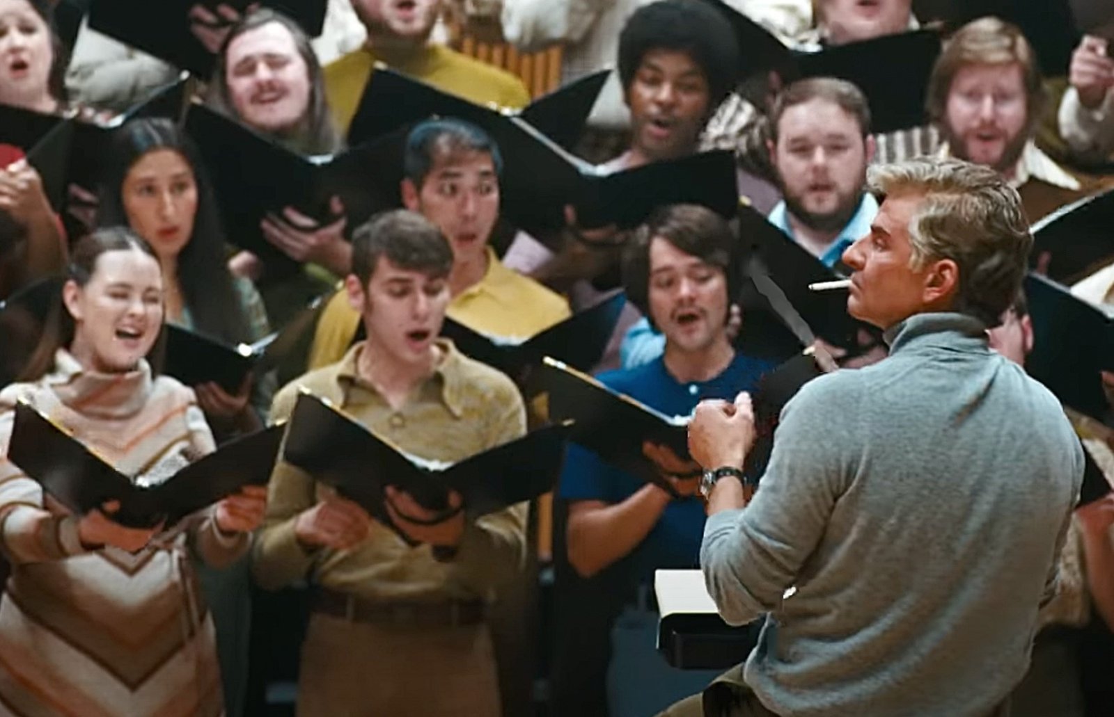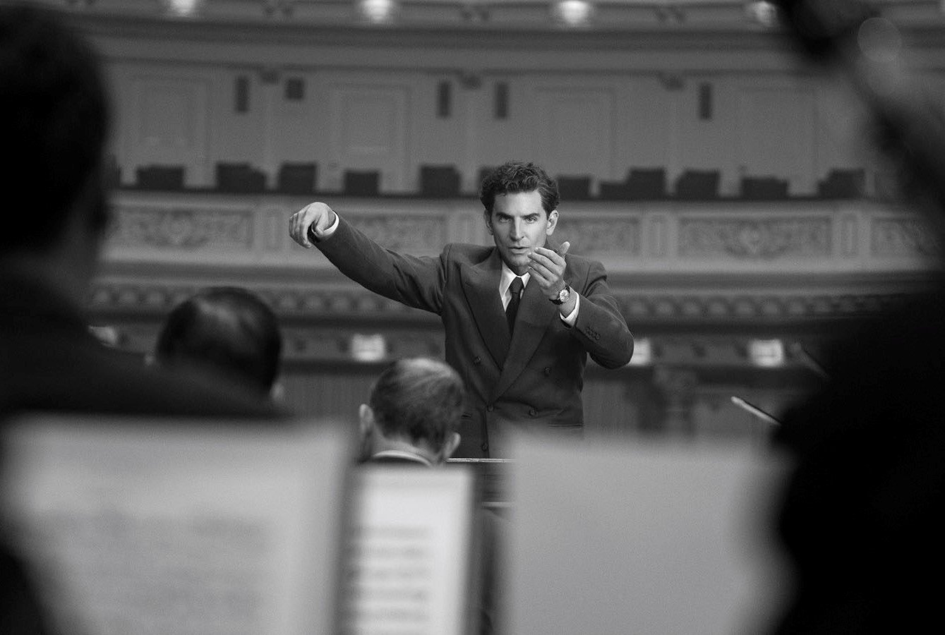 Bradley Cooper, encarnando a Bernstein, lo llena de ansiedad y ambigüedad. Es un hombre que se sabe talentoso y admirado, y que busca aprovechar ese reconocimiento y su carisma para sus aventuras homosexuales, que en un punto dejan de tener la discreción que las caracterizaba, complicando el pacto que hizo con su esposa y sembrando rumores entre sus hijos a medida que estos van creciendo. Pocas veces lo vemos conduciendo una orquesta, exceptuando una magnífica secuencia que reproduce el concierto de 1973 en el que dirigió a la orquesta sinfónica de Londres tocar en la catedral de Ely, en Inglaterra, la Sinfonía No. 2 de Mahler, “Resurrección”. También hay una lograda escena onírica en la que él y Felicia ven uno de los números musicales que se van a convertir en el musical de Broadway On the Town.