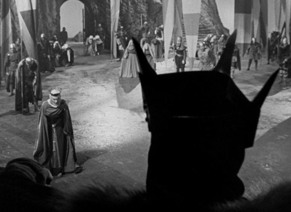 Orson Welles presta la potencia de su voz –y el acento escocés antiguo- al servicio de una narración totalmente cerrada y claustrofóbica, una sucesión de crímenes y atropellos en nombre de una causa personal ciega, que va a ser combatida por las fuerzas cristianas que representan el nuevo orden impuesto que viene a derribar al oscurantismo y a imponerse, no sin excesos igual de graves, como la historia se ha encargado de contarnos. Macbeth se ve como una historia de terror, el drama de un hombre arrastrado por su avidez infinita de poder, ese que no conoce discernimiento alguno: es un fin absoluto, un deseo que es punto final, que anula cualquier intención previa o posterior.
