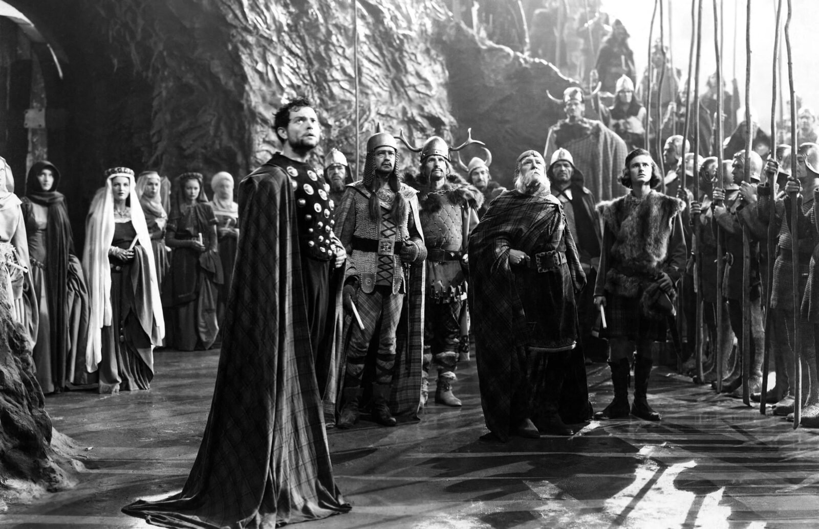 Dejemos que sea el propio Orson Welles quien resuma con sus palabras la película que vamos a ver: “Nuestra historia se sitúa en Escocia, en la vieja Escocia salvaje, medio perdida en la niebla que cae entre la historia registrada y el tiempo de las leyendas… La cruz acaba de llegar allí. Los agentes del caos, los sacerdotes del infierno y la magia –magos y brujas- conspiran contra la ley y el orden cristianos. Sus instrumentos son hombres ambiciosos. Esta es la historia de uno de esos hombres y de su esposa. Un valiente soldado oye decir a las brujas una profecía de futura grandeza, y partiendo de esa clave se abre camino asesinando hasta el trono de un tirano, solo para al final de todo acabar cayendo odiado y ensangrentado…” (1). Welles hizo esta narración explicativa para abrir Macbeth (1948) cuando tuvo, por exigencia de los productores de Republic Pictures, que eliminar más de veinte minutos del montaje original que había hecho. Por fortuna la versión del filme que hoy se conserva tiene el metraje que su director planteó y esta narración no hace parte de la película, sencillamente porque no le hace falta. Todo lo que aquí nos dijo está traducido a imágenes en su Macbeth.