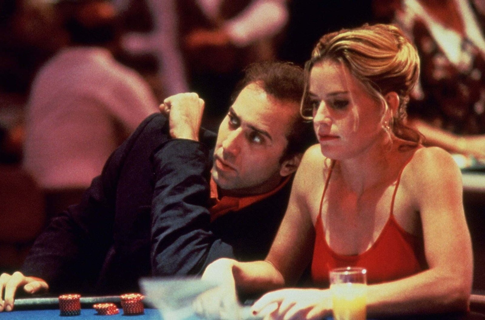 Esta sequedad moral no es casual. Mike Figgis —director, guionista y músico inglés— venía de una filmografía irregular, con títulos mediocres como Stormy Monday (1988) o Liebestraum (1991), y otros estrenados entre nosotros —pero no por eso menos desiguales— como Sospecha mortal (Internal Affairs, 1990) o Mr. Jones (1992), con Richard Gere y Lena Olin. Quizás consciente de sus propios límites dentro del engranaje industrial, Figgis optó por los caminos del cine independiente para filmar Adiós a Las Vegas, curiosamente, una de las películas más unánimemente aplaudidas de su carrera. El guion, escrito por él mismo, se basa en una novela semiautobiográfica de John O’Brien, un autor alcohólico que se suicidó apenas dos semanas antes de que comenzara el rodaje. La fidelidad o no de la adaptación poco importa aquí: lo esencial es que la historia queda reducida a lo esencial, al encuentro —breve, frágil y condenado— de dos soledades.