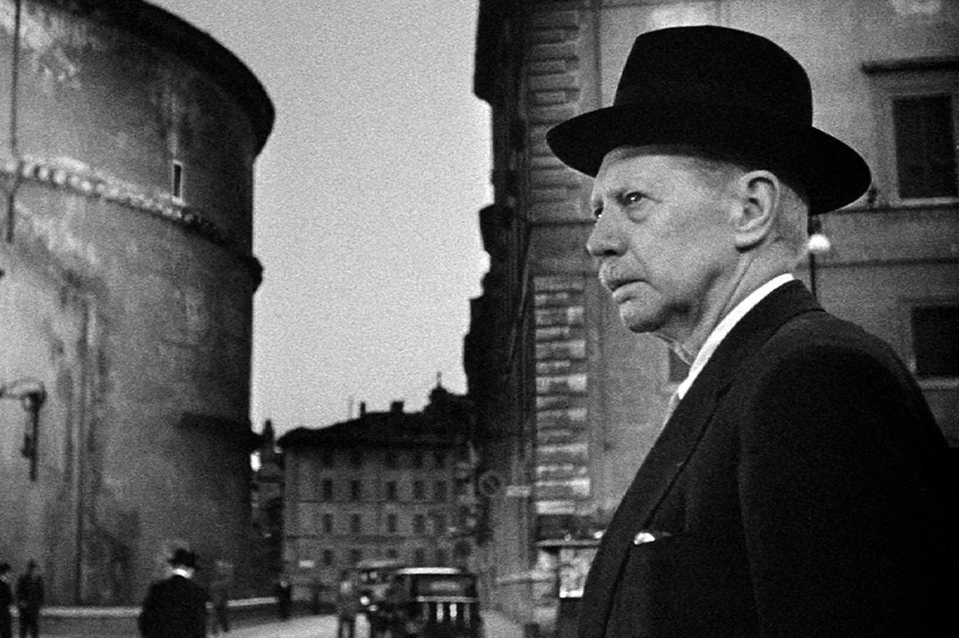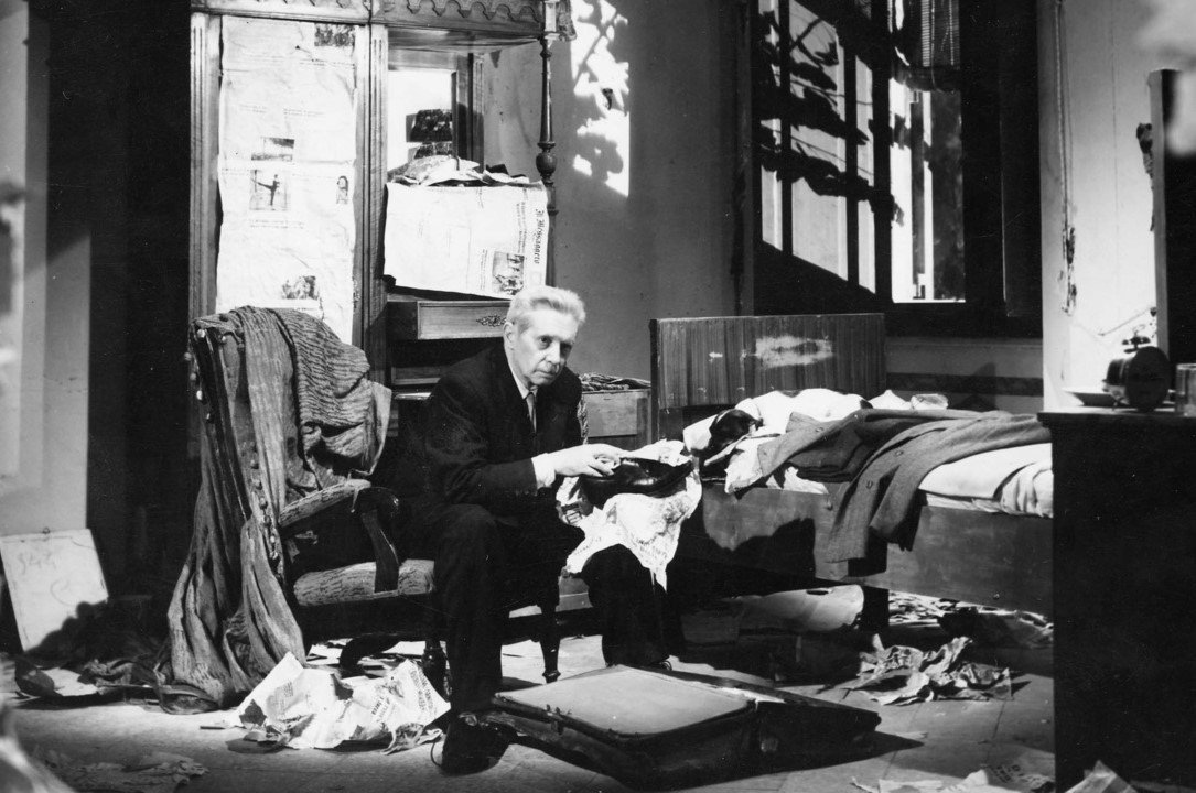 El director Vittorio De Sica y el guionista Cesare Zavattini quieren transmitirnos ante todo esas sensaciones -lo que pasa por la cabeza de Umberto- antes que mostrarnos meras vivencias. Si el accionar de una persona corresponde a un proceso mental previo o simultáneo, los autores del filme quieren privilegiar lo segundo, la elaboración mental que lleva a que hagamos algo, sea levantarnos de la cama, optar por pedir limosna en la calle o intentar terminar con nuestra vida. Por eso la película tiene silencios y tiempos muertos enormes, bellos, complejos. Umberto (interpretado por Carlo Battisti, un profesor de lingüística, en su única actuación en el cine) está pensando en su destino gris; María -la joven criada de la casa donde arrienda una habitación- está pensando en el futuro suyo y en el del hijo sin padre que aún no nace. Por una virtud absoluta de la puesta en escena y de la dirección de actores los vemos pensar, tal es la intensidad dramática que reflejan sus rostros. Se detienen. Piensan (lo mejor es que sabemos que lo hacen). Y luego los vemos en un pausado accionar derivado de -o que acompaña a- lo que pensaron.