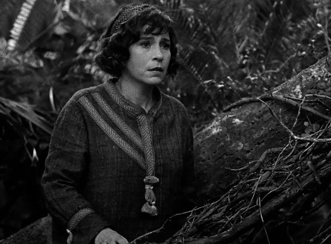 La película está dividida en dos partes: la huida permanente de Edward (el actor lisboeta Gonçalo Waddington) en medio de la zozobra y el bochorno existenciales, devenido en un eco de aquellos personajes de Joseph Conrad que navegaban por mares lejanos huyendo de sí mismos,  y a continuación la persecución entre decidida y cómica de Molly (interpretada por Crista Alfaiate, también natural de Lisboa), que termina explicándonos porque lograba localizarlo con tan sorprendente facilidad. Molly en su concepción es un personaje de alguna película pretérita: es Jean Arthur en algún filme de Capra, es Barbara Stanwyck en alguna screwball comedy de Sturges, tal es la herencia de su tozudez y de su embeleso romántico.