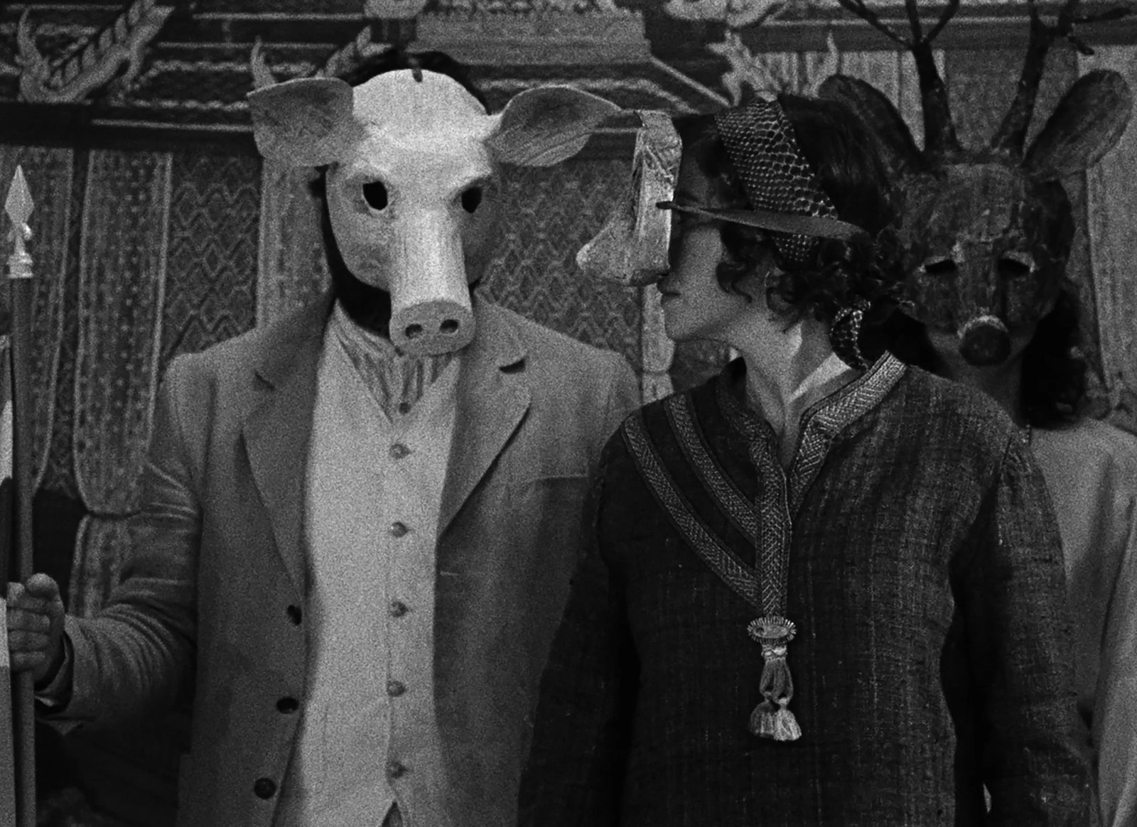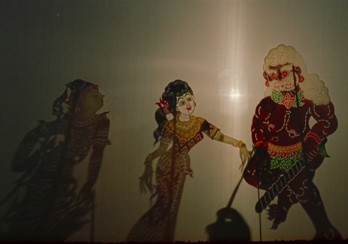 En esa tensión entre lo artificioso y lo real, Miguel Gomes encuentra un terreno fértil para reflexionar sobre el cine como acto de memoria y reinvención. La cámara, con su mirada deliberadamente estilizada, no solo captura los paisajes en estudio que recrean los muelles brumosos o los mercados abarrotados, sino que también se detiene en los gestos mínimos de sus personajes: la mano de Edward que tiembla al abrir un telegrama, el brillo desafiante en los ojos de Molly al subir a un tren. Estas imágenes se entretejen con planos documentales de las ciudades asiáticas contemporáneas, como si el pasado y el presente dialogaran en un mismo lienzo, como si ficción y realidad hicieran parte del mismo tejido. En Grand Tour el cine no imita la vida, sino que la reimagina. Desde que la película empieza hay imágenes del presente: un carrusel nocturno medio improvisado donde unos niños juegan, un titiritero que nos enseña sus ornadas marionetas birmanas sostenidas por hilos. Ese teatro de marionetas (conocido como yoke thé), no está ahí por azar, como no lo están las marionetas del teatro de sombras tailandés (nang yai) que nos cuenta un relato mitológico.