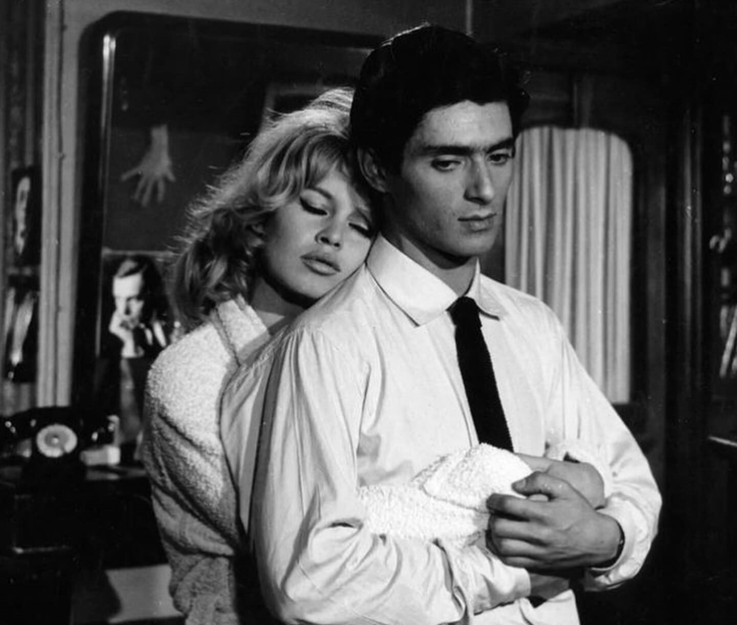 En una de las secuencias iniciales del filme Solamente por amor (La bride sur le cou, 1961) Brigitte Bardot —la llamaré B.B. de acá en adelante, tal como todos hacían— interpreta a una modelo llamada Sophie. Están en una sesión fotográfica y ella aparece tendida en una hamaca. De pronto adopta una pose juguetona, con la mano derecha apoyada en el mentón. Una asistente del fotógrafo la observa y se sorprende.